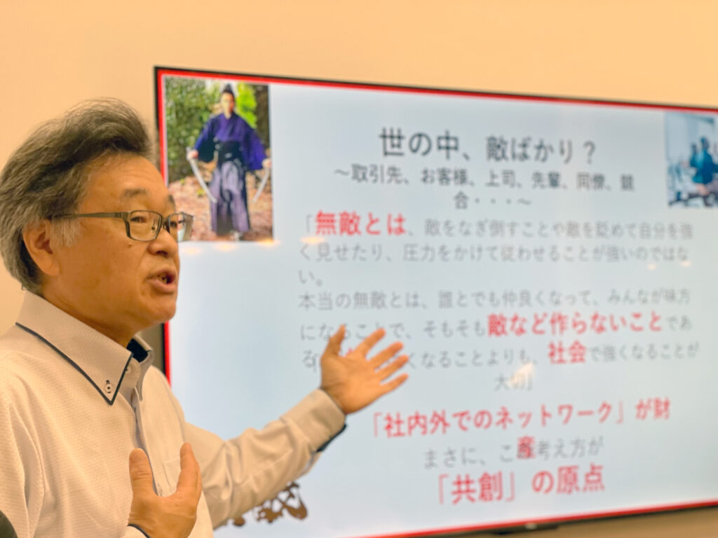 最後に掲げられたのは、好きな言葉であるという「無敵」。この言葉は「どんな敵にも打ち勝つ」という意味ではなく、「誰とでも仲良くなり、みんなが味方になる」「そもそも敵を作らない」ということだと宮地氏は言います。これまで社内外で築き上げてきたネットワークが財産だというとおり、多くの人々と連動しながら新たな市場や価値観を生み出してきた同氏の示唆に富んだお話に、参加者からも質問が続出。終了時間を過ぎても、活発な対話が繰り広げられました。